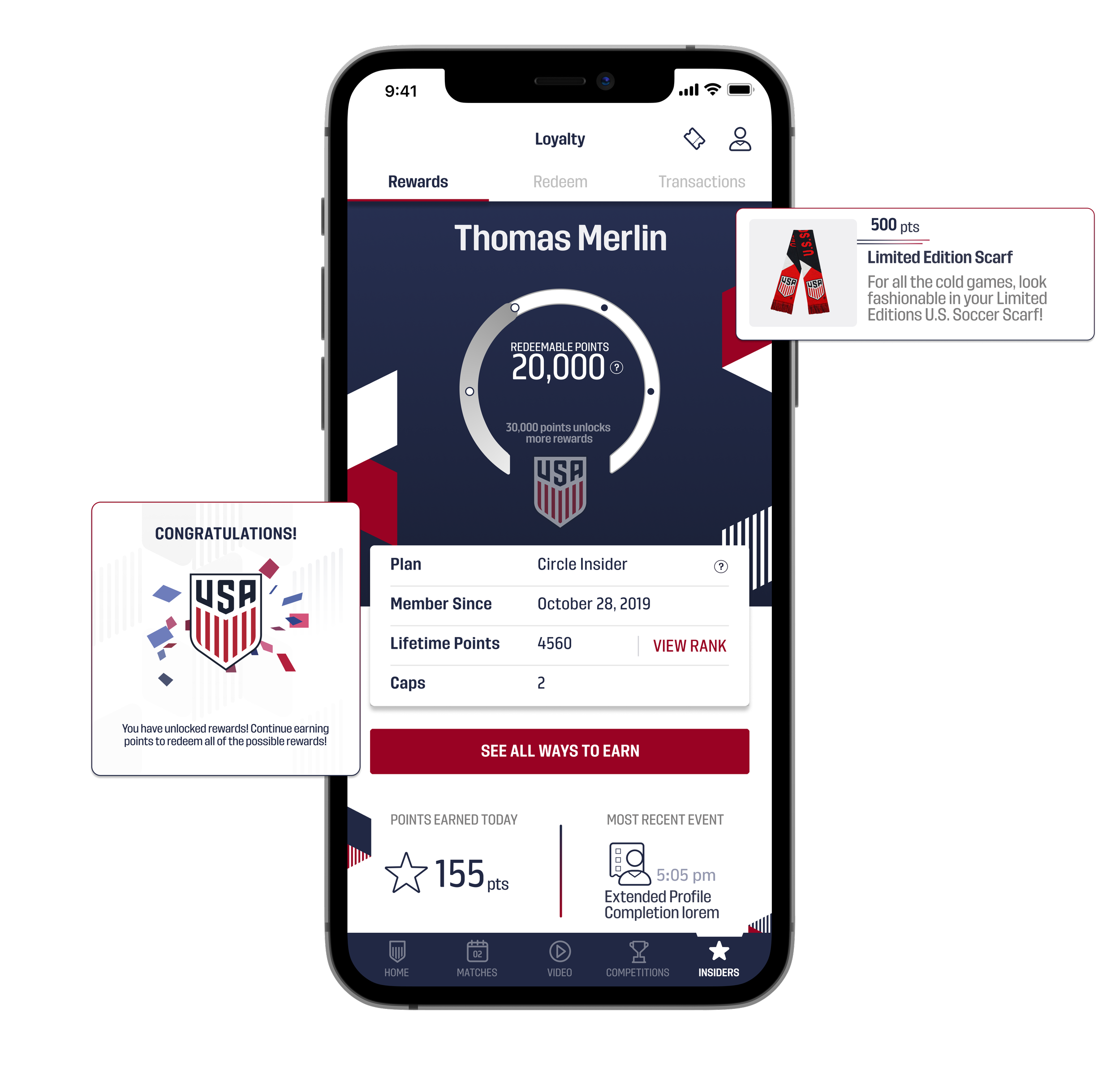 Increasing app engagement for U.S. Soccer fans with loyalty rewards.